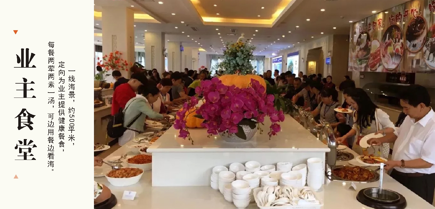 业主食堂:两荤两素,四菜一汤,每餐16元,全海景餐